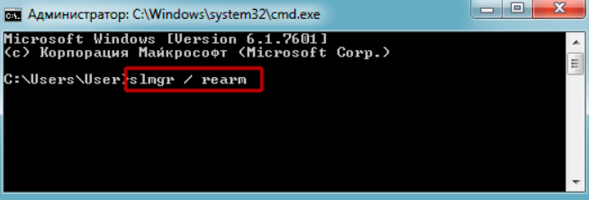 slmgr /rearm. - Нажмите Enter и перезагрузите компьютер.